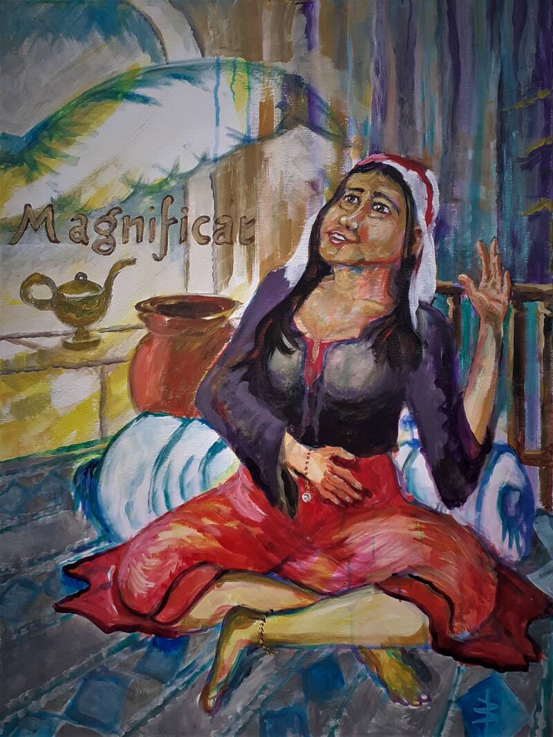 Voor onze kerk (Verbindingskerk Heerde) maakte ik in Adventstijd dit schilderij over Maria. In mijn toelichting citeerde ik Luther in zijn geweldig mooie boekje: Magnificat (1521)